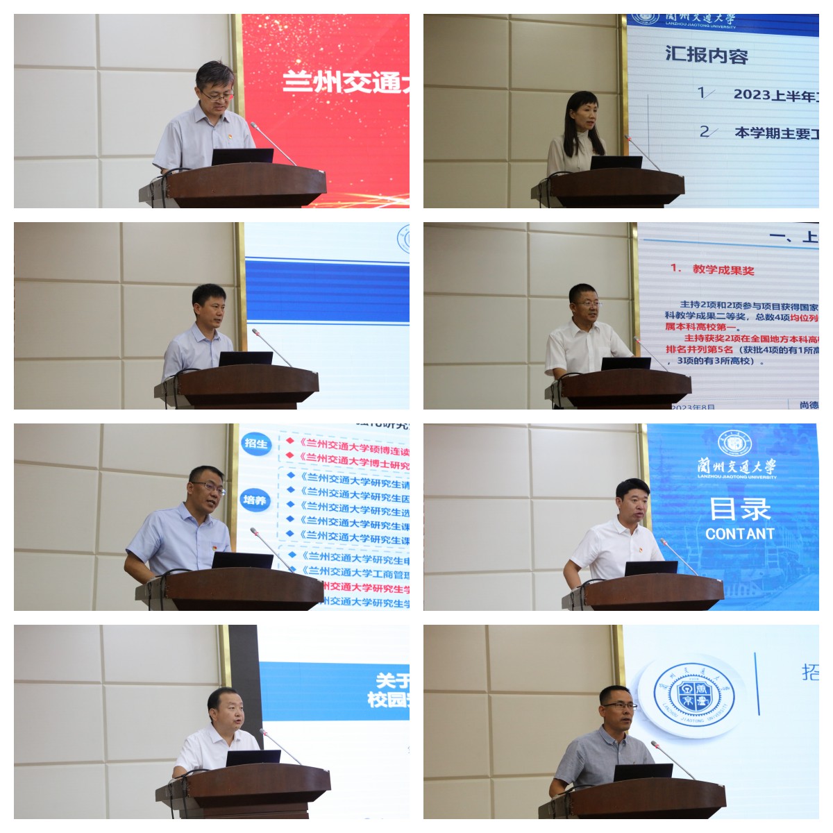 党委宣传部、学科规划与建设处、科技处、教务处、研究生院、学生工作部、保卫工作部、招生就业处等部门分别就上半年工作进展和新学期工作计划进行汇报。分管校领导逐一进行点评,并安排部署相关重点工作。