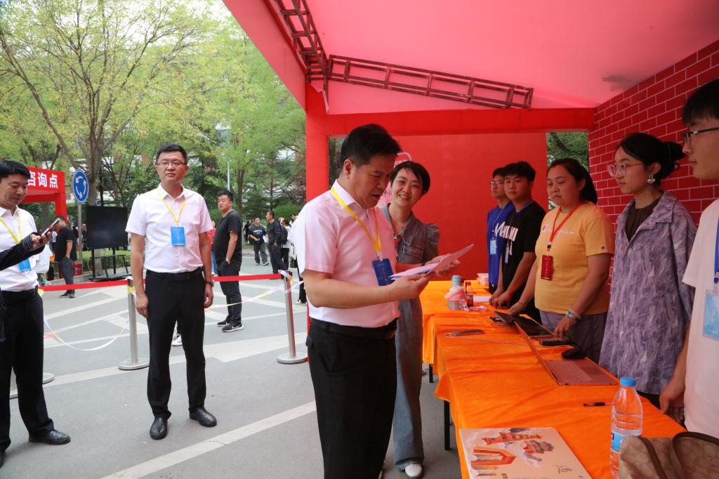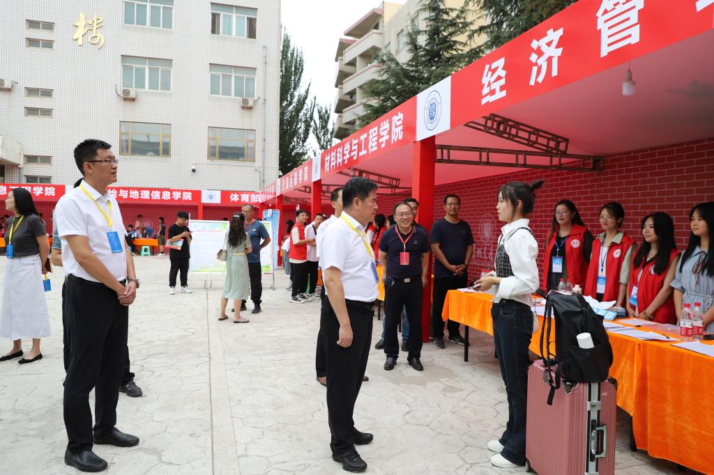 下午,校党委书记狄生奎来到新生报到现场,全流程视察和指导迎新工作,与报到新生及家长亲切交流、合影留念,慰问工作人员和志愿者。校党委副书记贡力、副校长闫浩文及相关职能部门负责人陪同。