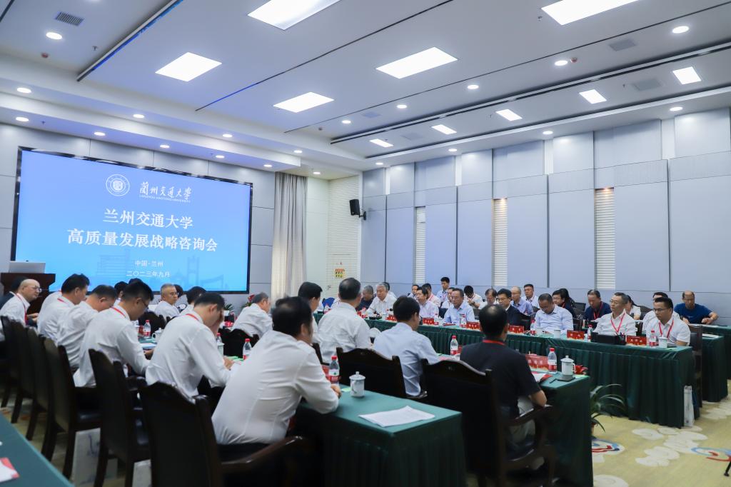 咨询会上,狄生奎作了题为《勇担振兴之责发挥行业优势 扎实推进全面振兴中西部高等教育兰州交通大学实践》报告,紧紧围绕高质量发展这一主题,从学校历史沿革与基本概况、办学优势与特色、学校改革发展成就、面临的形势、挑战与机遇、学校发展目标与战略举措、存在的问题等作了汇报,擘画了学校发展蓝图。狄生奎指出,当前学校发展面临的机遇和挑战并存。纵观国际形势、国家战略层面、区域战略层面以及交通运输行业发展层面、高等教育改革发展层面,都为学校发展带来了政策机遇。学校将准确把握高等教育的历史方位和发展走向,承担起时代赋予的历史重任,因势而动,顺势而为,乘势而上,在困难中寻出路,在改革中谋发展,主动作为,积极响应国家和甘肃省区域社会经济发展战略需求,锚定创建“区域优势突出,行业特色鲜明的高水平大学”目标,毫不动摇地推动“交通运输工程”国家一流学科突破,实现师资队伍水平、人才培养能力、科技创新和社会服务能力、综合办学条件、国际化办学水平五个新提升,建成国家轨道交通行业技术创新人才培养高地和西部地区高速铁路服役安全与智能运维研发创新高地“两个新高地”。