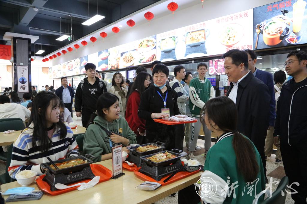 在朝阳餐厅,狄生奎认真查看供餐品种、价格、学生用餐秩序等情况,要求餐厅管理人员及服务人员,务必做好食品安全保障,稳定饭菜价格,让每一位学生吃得可口、吃得营养、吃得放心。“假期有什么计划?”“一顿饭大概要花多少钱?能不能吃饱?”狄生奎与用餐学生亲切互动,共叙佳节情谊,温馨的气氛让刚刚离开家乡的学子深刻感受到置身于新的大家庭中的融融暖意。狄生奎代表学校向同学们发放月饼,向大家送上诚挚的节日问候和美好祝福,并和学生一同进餐。他勉励同学们,珍惜大学时光,在学习中提升自我,在奋斗中实现价值,并嘱咐同学们在业余生活中注重强身健体,保持良好的生活作息规律。