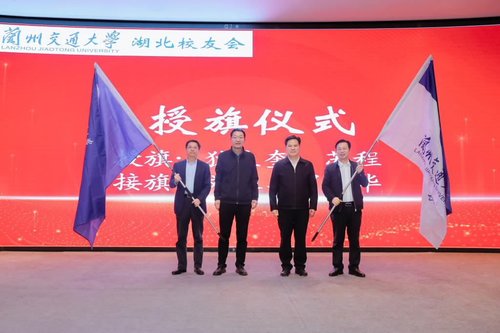 狄生奎、苏程为新一届湖北校友会授会旗、颁发委任聘书。
