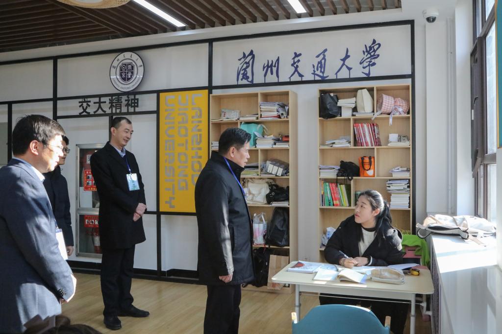 狄生奎一行还走访了第一教学楼的文化长廊、学院专业固定教室、绘图教室及阶梯教室,并与学生进行亲切交流,仔细倾听诉求,同时就教学楼大厅设置自助打印机等配套服务设施进行了解,对这种便于学生、服务学生的做法给予充分肯定。