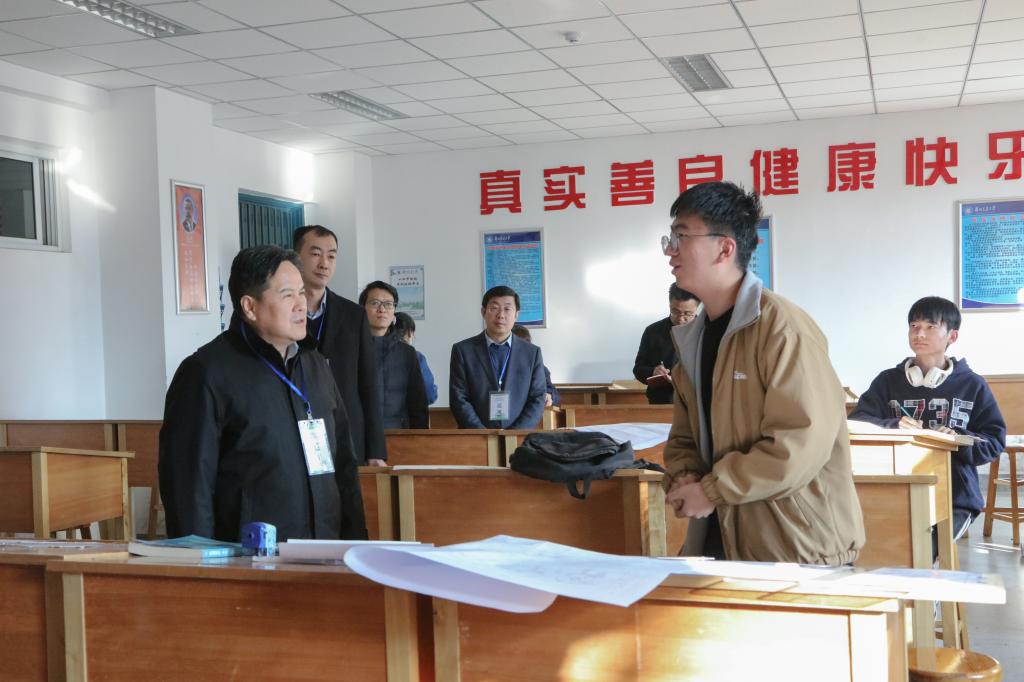 1月8日上午,校党委书记狄生奎在副校长陈光武陪同下深入期末结课考试一线开展巡查工作,教务处、党委(校长)办公室、党委宣传部相关人员陪同。