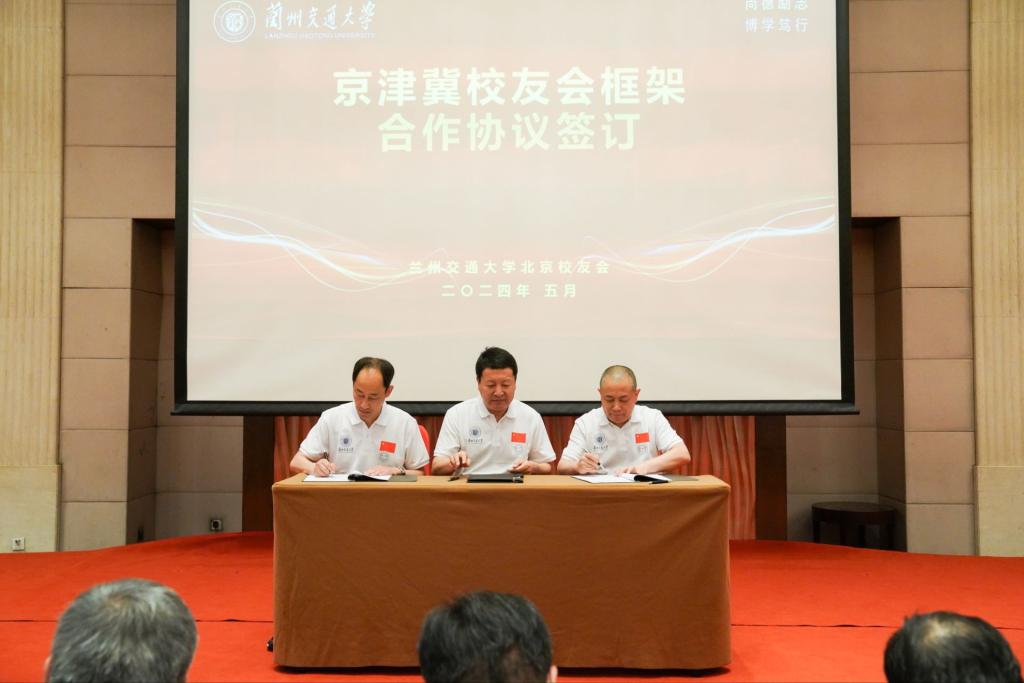 北京、天津、河北三地校友会负责人签订京津冀校友会协同创新合作框架协议。狄生奎为京津冀校友协同创新中心授牌。