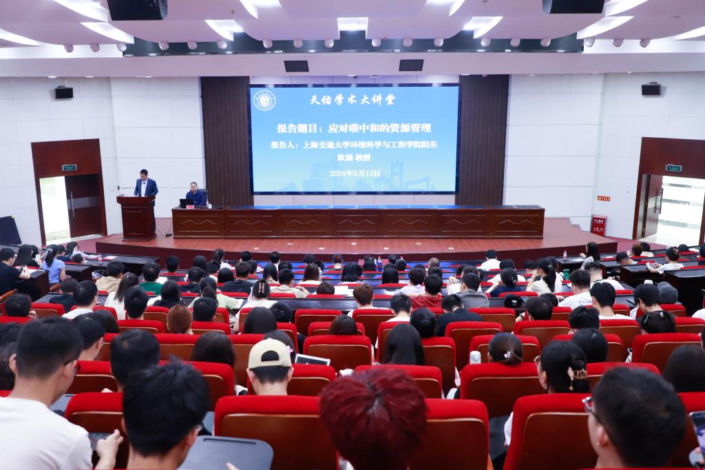 会后,耿涌作了关于应对碳中和资源管理的学术报告,来自环境与市政工程学院、土木工程学院和新能源与动力工程学院的300余名师生聆听了报告。