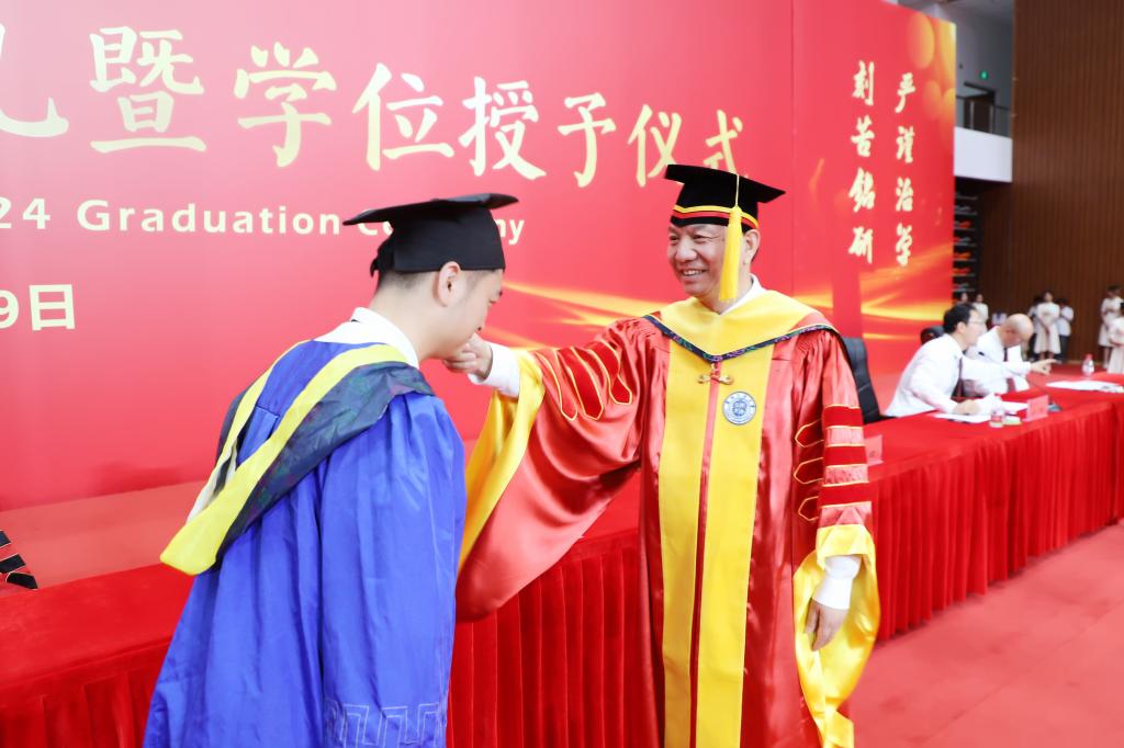 典礼开始前,大屏幕上播放着毕业纪念片。求学的时光,承载着大家太多的回忆与不舍。同学们从稚嫩到成熟、从迷茫到坚定,即将带着师长的美好祝福与谆谆嘱托,走向新的人生旅程。大学生艺术团献上精彩的暖场表演,一首首熟悉的歌曲温馨感人,带领同学们重拾美好校园时光。