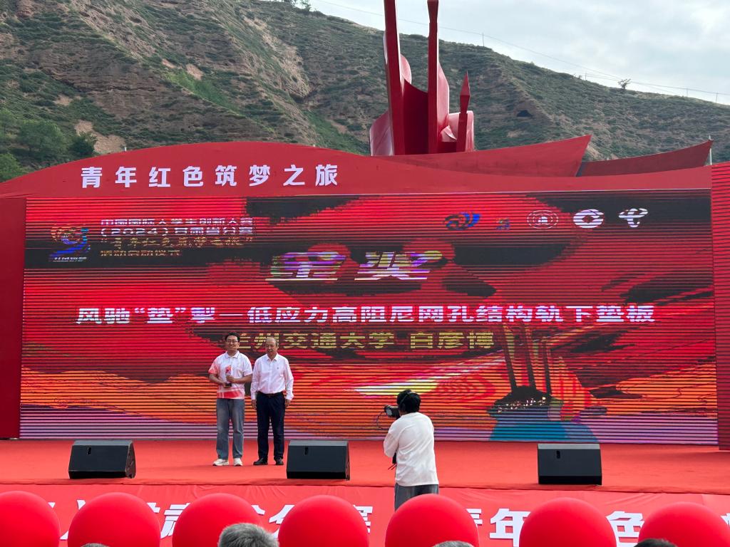 我校学生白彦博作为上届大赛甘肃唯一国家级金奖项目负责人接受教育厅颁奖并代表全省参赛同学发言。