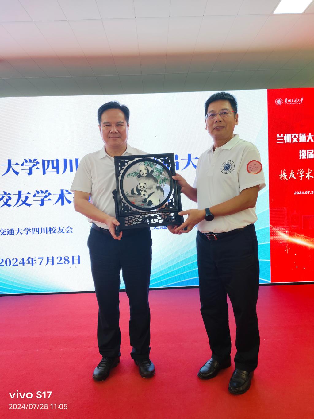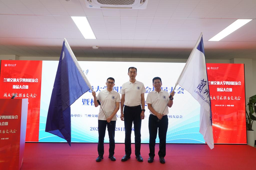 会议宣读了《关于兰州交通大学四川校友会换届申请的批复》,为新一届四川校友会理事会成员颁发聘书,为四川校友会授予校旗、会旗。