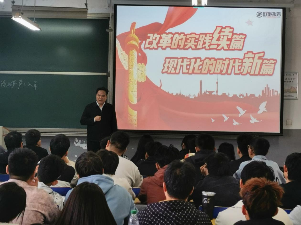 形势与政策课是理论武装时效性、释疑解惑针对性、教育引导综合性极强的一门高校思想政治理论必修课。校领导带头进课堂讲形势与政策课,是学校落实思想政治教育主体责任的体现,是认真贯彻落实高校“领导干部上讲台”制度的重要方式,也是我校近年来思政课教学改革的重要举措。这不仅增强了学生学好思政课的热情,也提振了广大思政课教师上好课的信心。今后,学校将继续探索思想政治理论课教学新模式,推动校领导讲思政课工作不断走向成熟,为学生提供富有理论性、思想性和亲和力的“思政大餐”,坚持立德树人,铸魂育人,把学生培养成为德智体美劳全面发展的合格的社会主义建设者和接班人努力奋斗。