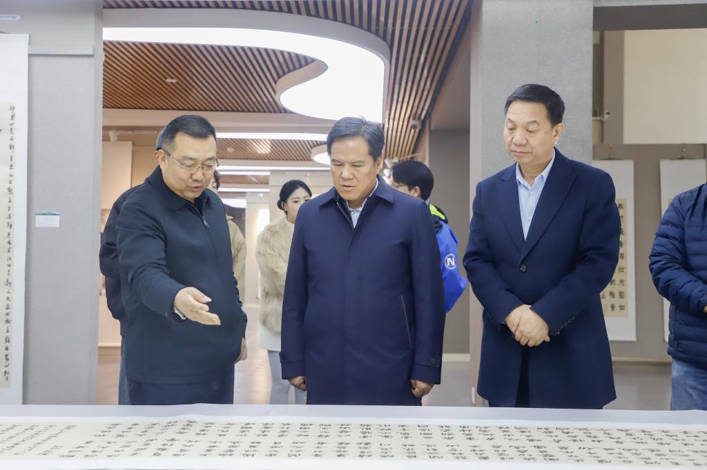 狄生奎在参观展览过程中与省文史馆负责同志深入交流。他指出,中国书画艺术植根中华文明五千年沃土,是我国特有的一种传统艺术,是中华民族世世代代精神文化宝贵财富。此次书画作品巡回展聚焦时代精神,展现时代风貌,为高校师生搭建了一个接触传统艺术、感受传统艺术的优良平台,将传统文化、高雅艺术融入校园文化,使广大师生从优秀书画作品中浸润文化熏陶,汲取精神力量,起到了很好的文化育人作用。