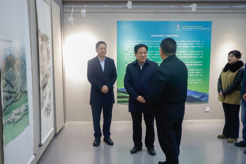 近日,由甘肃省政府文史研究馆主办的“幸福美好新甘肃——庆祝中华人民共和国成立75周年省政府文史馆馆员研究员祁连山写生创作书画作品巡回展”在兰州交通大学展出。11月27日上午,校党委书记狄生奎,校党委常委、副校长朱廷珺一行在省政府文史馆二级巡视员王处机、省政府文史馆业务处负责人等陪同下参观了展览。