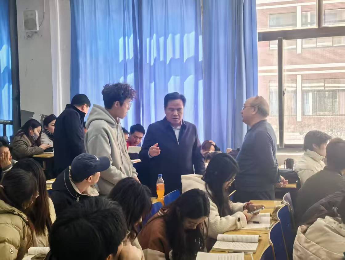 狄生奎走进马克思主义学院曹富雄教授的《毛泽东思想和中国特色社会主义理论体系概论》课堂,与同学们同上思政课。课堂上,曹富雄通过分析历史条件、梳理发展过程、阐释主要思想等方式全面系统讲授了“毛泽东思想及其历史地位”等章节内容。狄生奎认真听课并做记录,对教学内容、师生互动及课堂氛围等情况进行了全面了解。