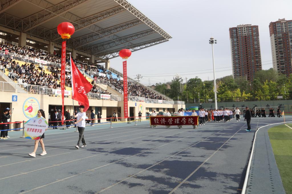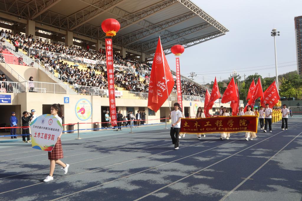 40个代表队方阵以饱满的热情步入运动场,他们意气风发,步履铿锵,口号嘹亮,尽显青年风采,充分展示了兰州交大人奋发向上的良好风貌和更高更快更强的体育精神。