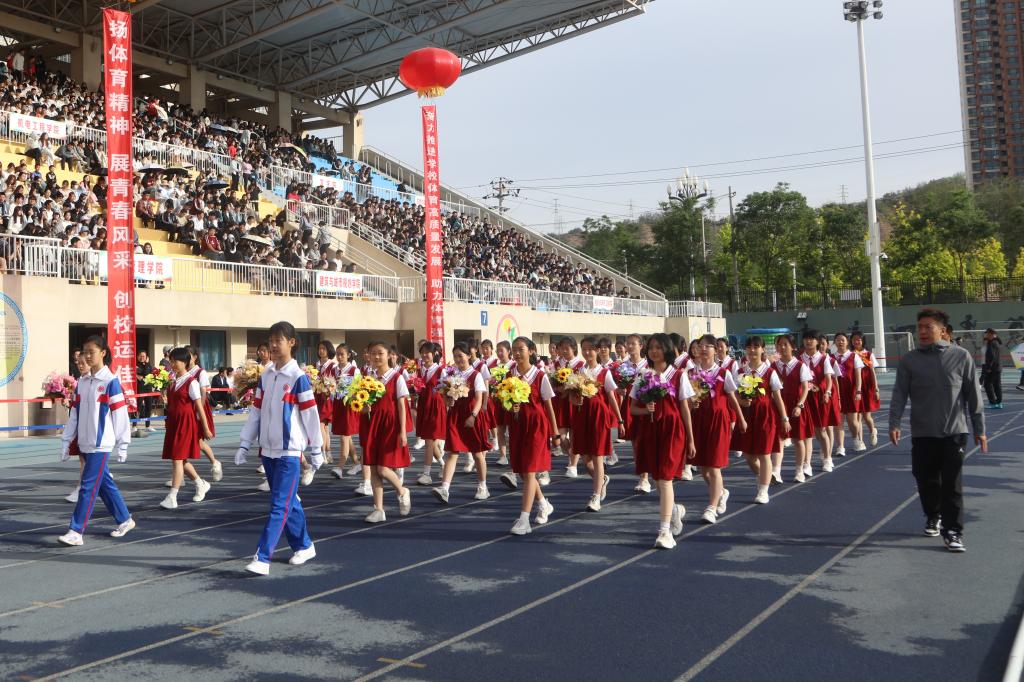 上午八时,伴随着激昂的《运动员进行曲》,国旗队护送着鲜艳的五星红旗缓缓入场,他们步伐铿锵、英姿飒爽,拉开了开幕式的序幕。紧随其后的是运动会会旗方阵、会徽方阵、彩旗队、附小鼓号队、附中花束队、裁判员方阵、退役大学生方队,以及由各学院(分会)师生组成的运动员方阵。