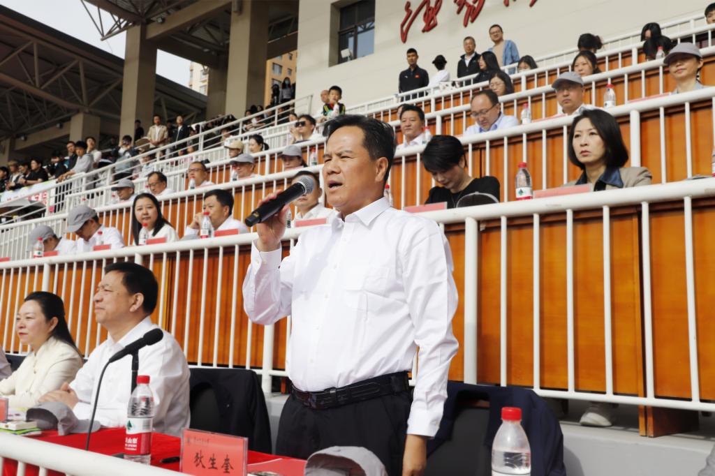 聂磊致开幕词。她代表学校对本届运动会的举办表示热烈的祝贺,向全体运动员、教练员、裁判员和赛会工作者表示衷心的感谢。她回顾了学校体育工作的丰硕成果,强调体育是落实“立德树人”根本任务和“五育并举”的重要环节,是培养青少年强健体魄、健康心理和坚毅品质的重要阵地。她希望全校师生在体育锻炼中享受乐趣、增强体质、健全人格、锻炼意志,把更高、更快、更强、更团结的体育精神转化为推动高水平大学建设的强大动力。最后,她预祝本次运动会取得圆满成功。