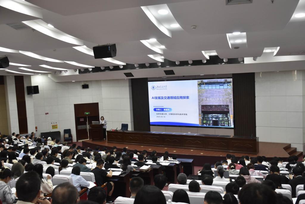 座谈会后,北京交通大学景丽萍教授在尚德楼大报告厅为300余名师生做了题为《AI发展及交通领域应用探索》的学术报告。
