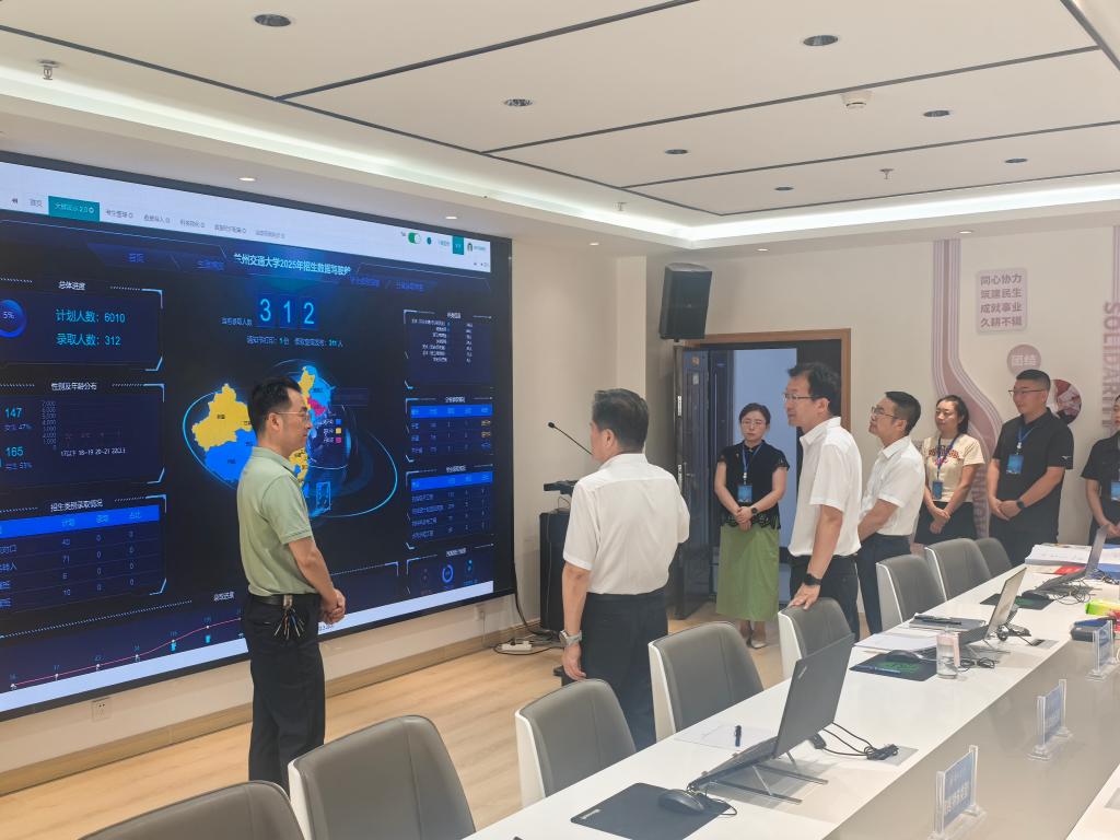 在紧张有序的录取现场,校领导认真听取了招生就业处关于各批次录取进度、投档情况及生源质量的详细汇报,仔细察看了录取系统操作流程,详细询问了各省生源特点与录取工作难点。