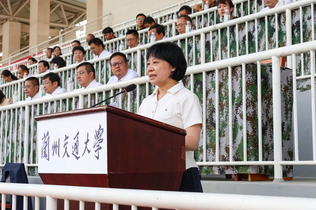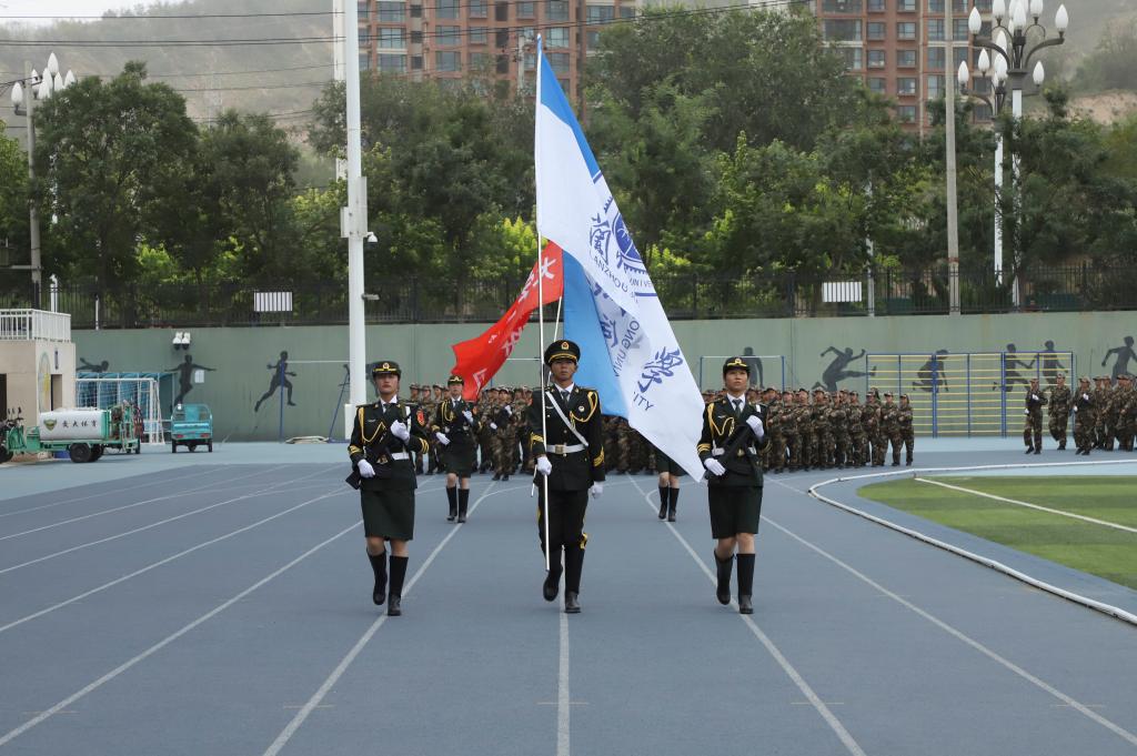 大会在庄严的升旗仪式中拉开帷幕,五星红旗冉冉升起,全场人员肃立致敬。随后,学校校旗与军训团团旗依次迎出,飘扬的旗帜承载着兰州交大的精神底蕴,也映照出新生们的青春誓言。