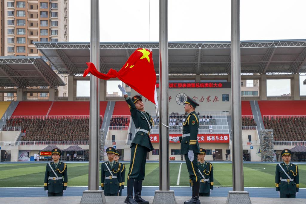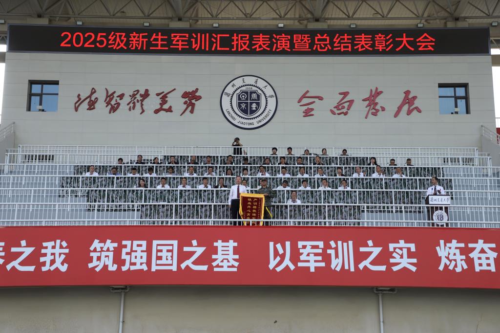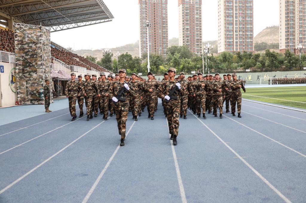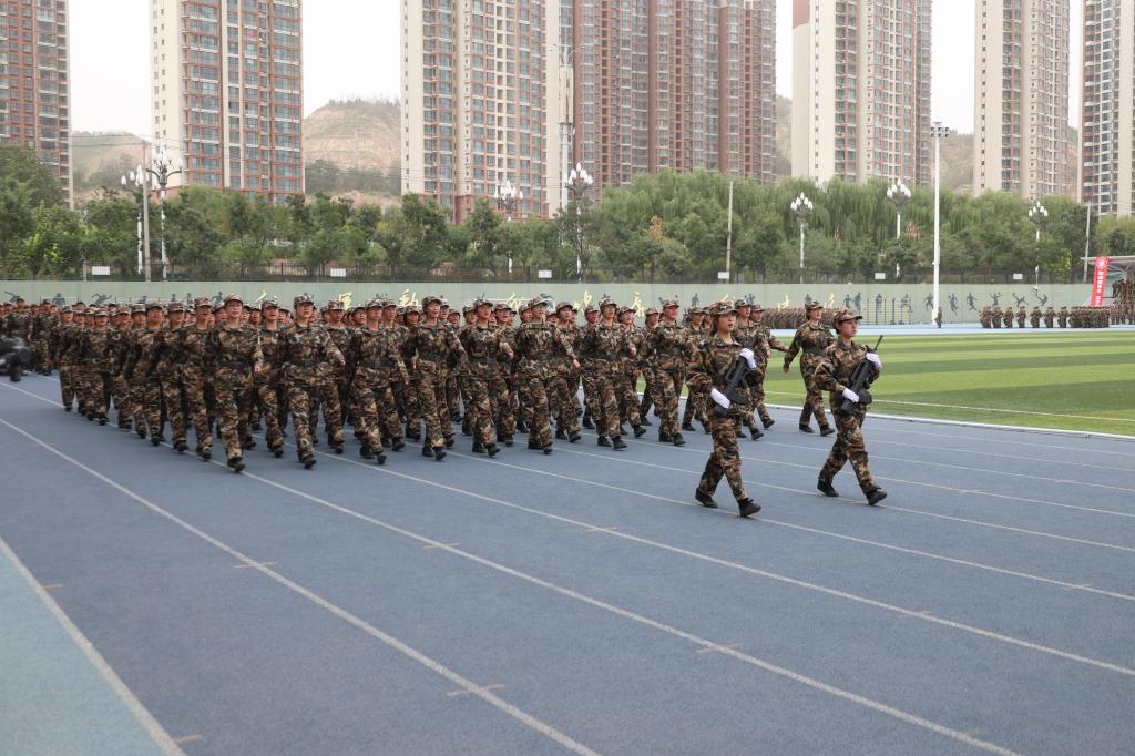 金秋九月,秋阳正好,迷彩飞扬。9月15日下午,我校2025级全体本科生、预科生军训汇报表演暨总结表彰大会在北校区体育场举行。经过武警甘肃总队某部官兵与学校退役军人先锋团、国防教育团骨干14天联合紧张的艰苦淬炼,5600余名参训新生以昂扬姿态接受检阅,交出了入学后的第一张精彩答卷,正式结束军事技能训练。