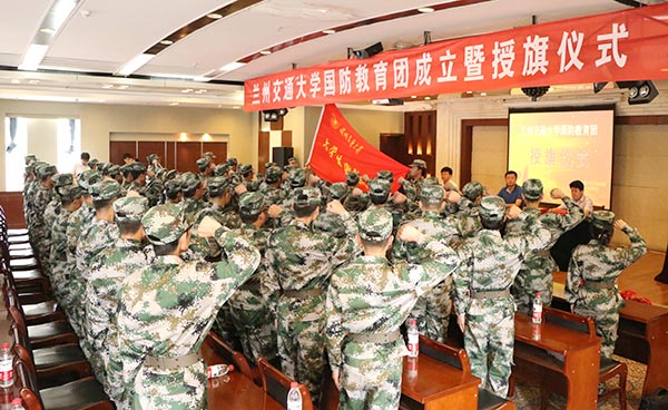 授旗仪式上,学校党委人民武装部负责人对“国防教育团”前期训练做了总结,宣读了武装部《关于成立兰州交通大学大学生国防教育团的通知》及任职名单,为“国防教育团”授旗,并强调了建立“国防教育团”对我校大学生国防教育、学生成长成才的重要意义,勉励“国防教育团”成为一支校园军营文化引领之师、国防教育奉献之师、成长成才荣耀之师,希望同学们听从指挥、服从命令、刻苦训练、勇于奉献,圆满完成大学生军训、民兵整组、人防整组等各项任务,为我校国防教育工作贡献自己的青春力量。