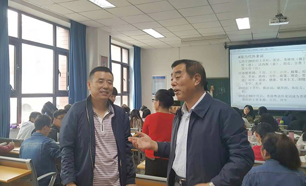 此次主讲教师是文学院王耀东副教授,讲授内容是《语言学概论》第十四讲“语言的接触”。买寿清副书记认真聆听了授课内容,边听讲解、边作记录。下课后与任课老师和听课的其他老师就教学方法、教学内容、教学效果进行了深入交流。在肯定王耀东老师教学优点和突出特色的同时,就以教学为中心、夯实基础、加强内涵建设、全面提升人才培养质量提出了要求。也希望参加听课的老师共同探索教育教学规律,结合学生和专业特点,不断改进教学方法,强调问题导向,学生为主,注重过程培养,把课堂教学工作做好做实。