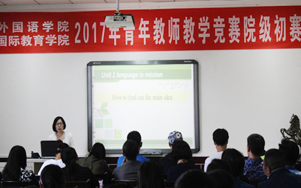 为充分调动青年教师教学积极性,夯实青年教师教学基本功,切实提高教学能力和水平,激发青年教师爱岗敬业、潜心教学的工作热情和创新精神,按照学校第22届青年教师教学竞赛的通知相关要求,5月27日下午,外国语学院、国际教育学院在第八教学楼D座举行了青年教师教学竞赛院级比赛。