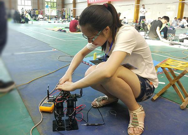 由王思明老师担任领队,王思明、张金敏、王成龙、杨栋等为指导老师的我校8支队伍参赛,最终荣获一等奖4项,二等奖2项,优秀奖2项。自动化学院白文、王小杰、魏万鹏组成的“Ease W”队荣获搬运工程项目光电车型赛一等奖;魏万鹏、王小杰、白文组成的“Step”队荣获双足竞步项目单电机竞步赛一等奖;柳胜男、王亚锋、王平平组成的“行云流水”队荣获竞技体操项目规定动作赛一等奖;曹广峰、汪可琴、程嘉伟组成的“先驱者”队荣获仿生爬坡项目双足仿人赛一等奖;张子航、高思雅、高东组成的“StarDust”队荣获 双足竞步项目窄足赛二等奖;芦杰、金志斌、张祥“急先锋”队荣获组成的仿人竞速项目标准赛二等奖。