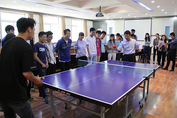 座谈会后,陈兴冲副校长还欣然应允,与同学们进行了一场乒乓球友谊赛。