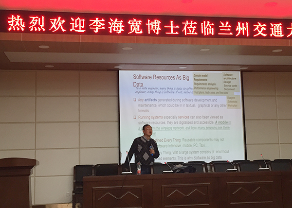 下午,李海宽博士在第二教学楼学术报告厅为广大师生做了题为“大数据时代的软件开发模式”的学术报告。他结合大数据时代软件开发世界前沿的一些知识,介绍世界领先的观点,讨论了学科前端研究的最新应用及未来发展方向。在现场提问环节有许多师生与李海宽博士做了深入互动,李海宽博士独特的研究视角、扎实深厚的学术底蕴和平和谦逊的学者风范赢得了在场师生们的阵阵掌声。我校约200名师生参加了此次学术报告会。