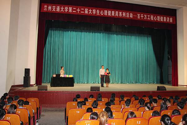 5月24日下午, 兰州交通大学第二十二届5•25“我爱我”大学生心理健康周系列活动——百千万工程大学生心理健康讲座在学校大礼堂正式开讲。此次讲座邀请到我校兼职教授、兰州大学心理学教授彭贤老师为2016级大学生心理健康教育实践课1100名学生做了题为《关爱自己 绽放生命——萨提亚模式个人成长》的精彩讲座。