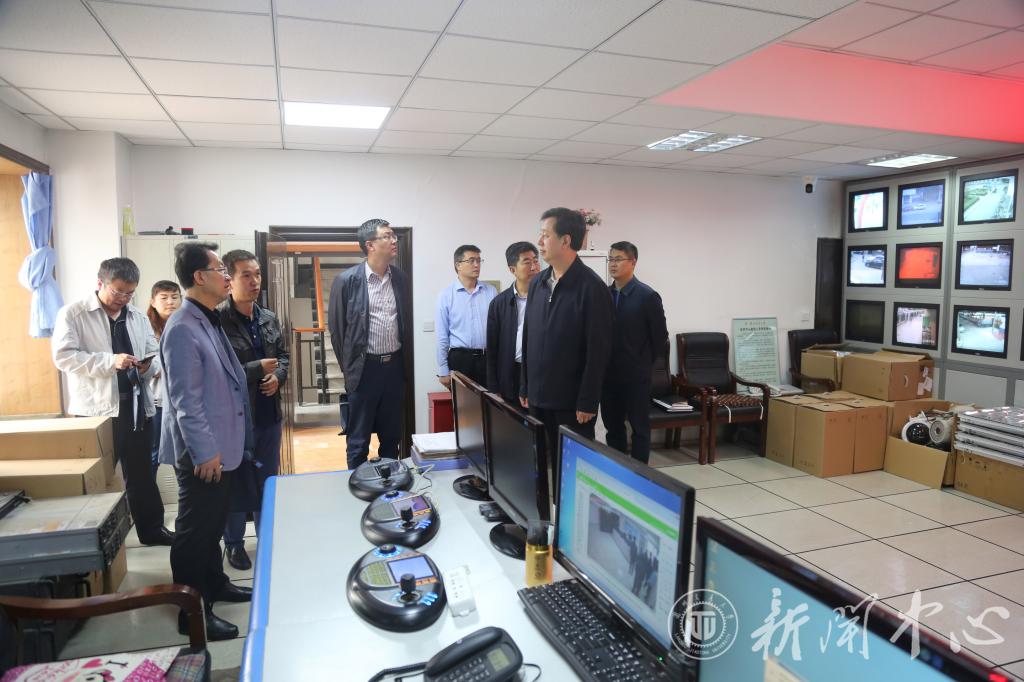 座谈会后,徐宏伟副厅长一行查阅了我校学习贯彻习近平总书记系列重要讲话精神、推进“两学一做”常态化制度化工作以及维稳工作制度建设等相关文档资料,并实地督查了校园安全监管的设施建设及人员配备等关键环节。