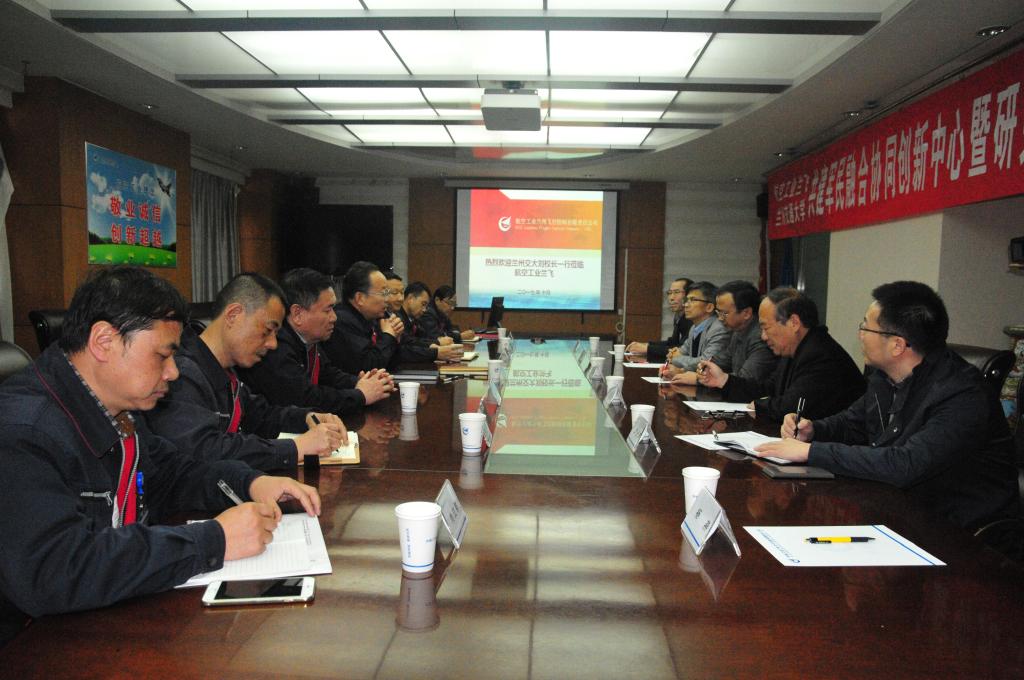 仪式上,中航工业兰飞公司刘智勇董事长就协同创新中心合作内容、军民融合“十三五”发展规划及发展重点做了介绍。刘振奎副校长介绍了我校主要科研情况。双方并就共同开展军民融合协同创新项目研究、主要关键技术研发、专业人才培养、打造军民融合创新发展平台、带动经济发展和成果转化等方面进行了深入交流,并达成共同组建从事军民融合领域新产品、新技术研发和转化应用的协同创新中心的意向。