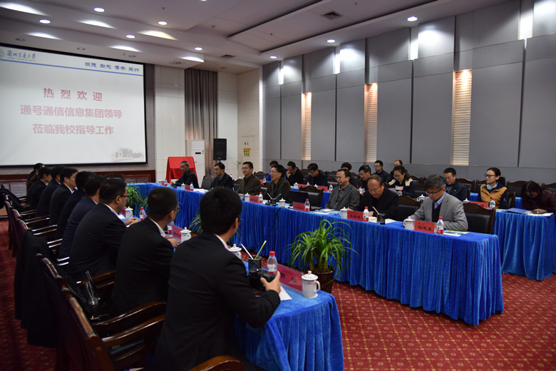 杨子江校长对通信信息集团一行表示热烈欢迎,表达了对于双方共同探索“校企合作、产学共赢”发展道路的良好愿景,并介绍了学校近期重点项目开展的情况,希望双方通过搭建校企合作桥梁,加强科研项目合作和成果转化,建立联合培养基地,实现校企双赢。刘振奎副校长对兰州交通大学的历史沿革、学校概况、人才培养、课题研究和对外交流情况作了简要介绍。蔡宏宇董事长介绍了通信集团的发展历程以及在中国铁路建设和运营中取得的突出成绩,并希望今后双方充分利用通信信息集团在铁路四电、地铁工程、市政工程、机场、港口等领域等项目板块的工程优势及生产条件,发挥兰州交通大学在通信、计算机、电子信息工程等学科的专业优势、人才储备及科研实力,在北斗卫星定位应用、无线网络频谱监测、视频图像分析、工程实施信息化管理等领域广泛开展合作,探索成立联合实验室,全面构建产学研战略联盟创新体系。