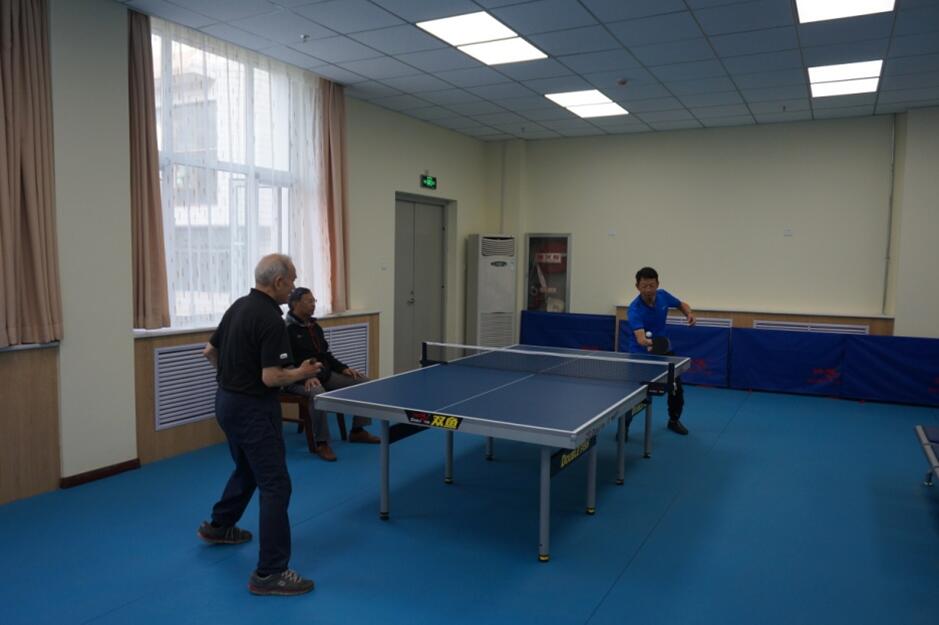 慰问期间,杨校长等还同离退休老同志们进行了一场紧张而又快乐的兵乓球友谊赛。