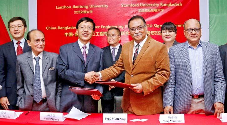 访问期间,代表团一行7人先后到访孟加拉斯坦福大学,孟中科技学院。校长杨子江与斯坦福大学Mohammad Ali Naq校长共同为“兰州交通大学 中国-孟加拉科技人才培养创新基地”揭牌,并签署了两校电力工程专业人才联合培养的合作备忘录。