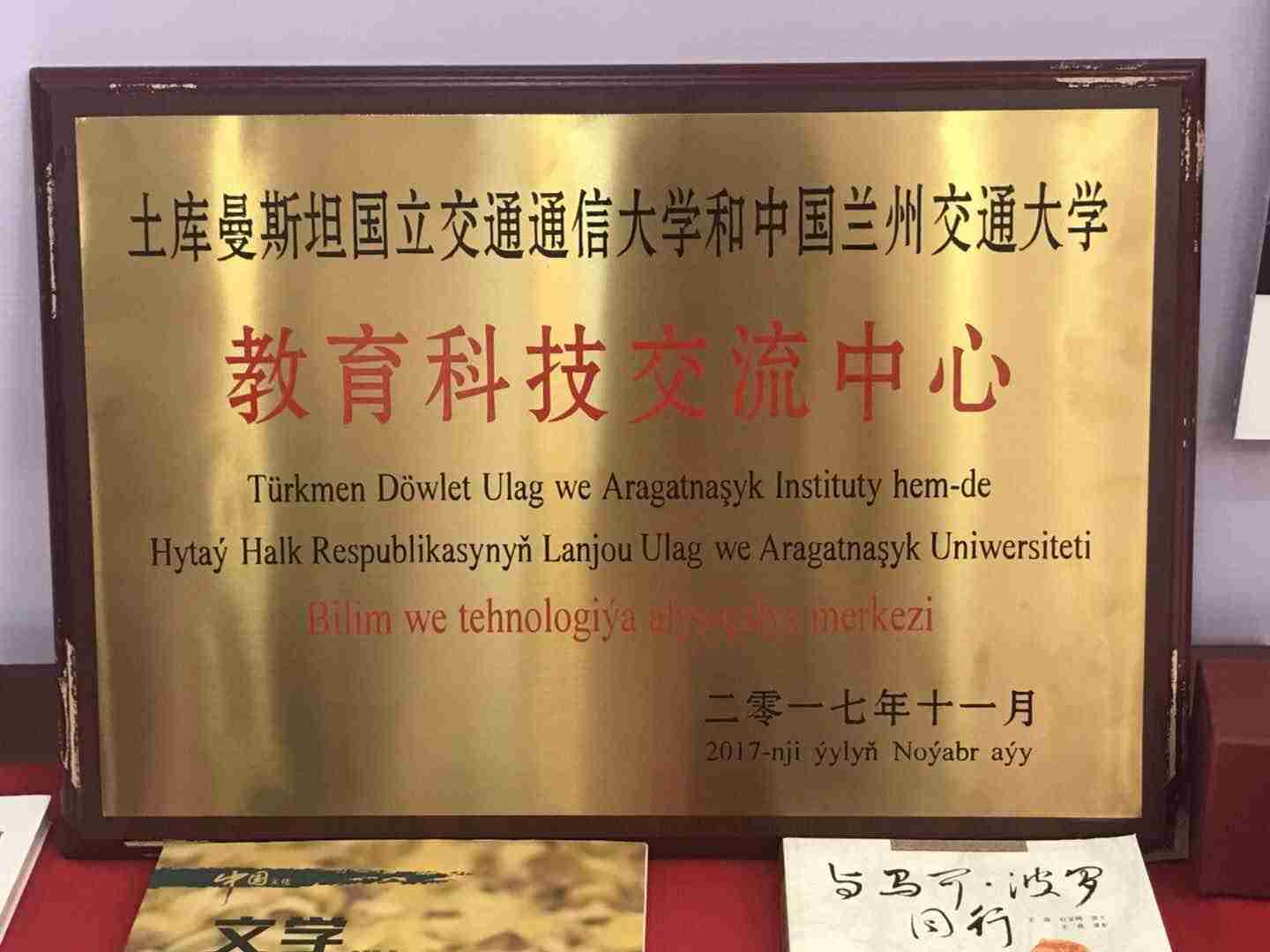 访问期间,代表团到访土库曼斯坦国立交通通信大学,两校校长共同签署框架合作协议,并为“兰州交通大学-土库曼斯坦国立交通通信大学教育科技交流中心”揭牌。土库曼斯坦教育部副部长阿塔巴耶娃,中国驻土库曼斯坦大使馆政务参赞向波出席并见证合作协议的签约仪式。