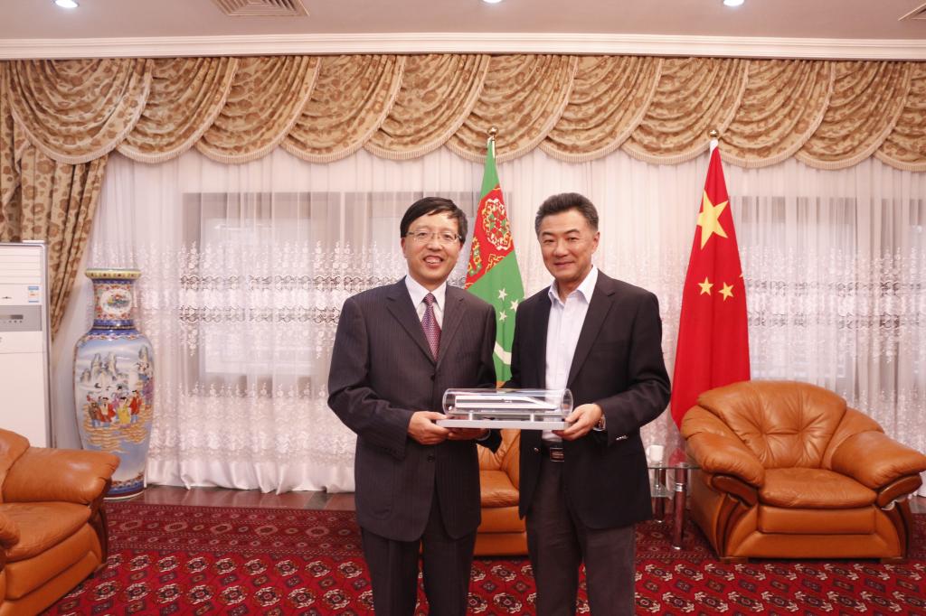 代表团访问土库曼斯坦期间,中国驻土库曼斯坦大使孙炜东会见代表团全体成员,并与校长杨子江举行工作座谈。座谈会上校长杨子江向孙炜东大使介绍了我校与土库曼斯坦合作交流情况,本次访问达成的合作共识、协议成果,以及“兰州交通大学-土库曼斯坦国立交通通信大学教育科技交流中心”成立背景及今后工作方向。孙炜东大使在听取介绍后表示,教育领域合作是中土战略伙伴关系的重要组成部分。兰州交大同土方高校合作取得积极成果,为中土教育合作增添了新内容。使馆将继续支持兰州交大同土国立交通通讯大学等高校扩大交流,充分发挥教育科技交流中心的桥梁作用,为中土“一带一路”建设提供更好人力支撑。中国驻土库曼斯坦使馆政务参赞向波参加工作座谈会。