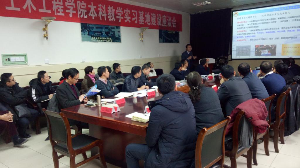 为进一步加强校外实习基地建设,增强学院与实习基地之间的交流与合作,1月5日下午土木学院在学术厅召开了本科教学实习基地建设座谈会。中铁二十一局、中国水利水电第四工程局、中铁七局、甘肃省公路航空旅游投资集团、甘肃省交通规划勘察设计院、甘肃交通科研院、甘肃省公路发展集团、甘肃路桥建设集团、兰州轨道交通有限公司、兰州铁道设计院、甘肃华成建筑安装工程集团等11家企业代表应邀出席,教务处相关负责人、学院领导班子成员、各系主任、相关办公室负责人参加会议。会议由学院党委书记李爱春主持。