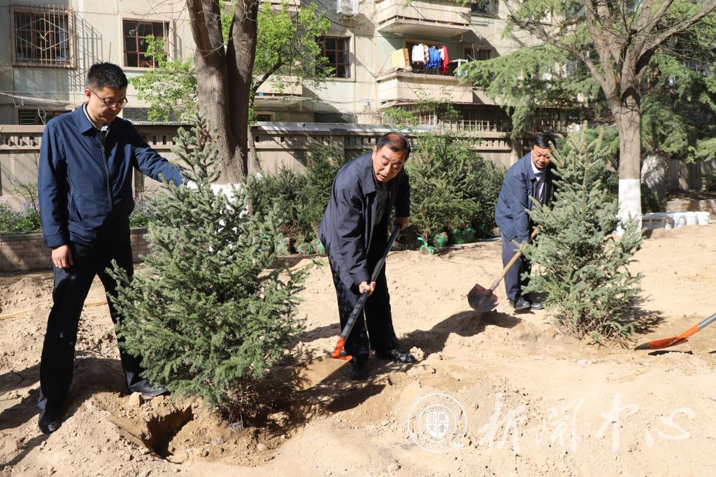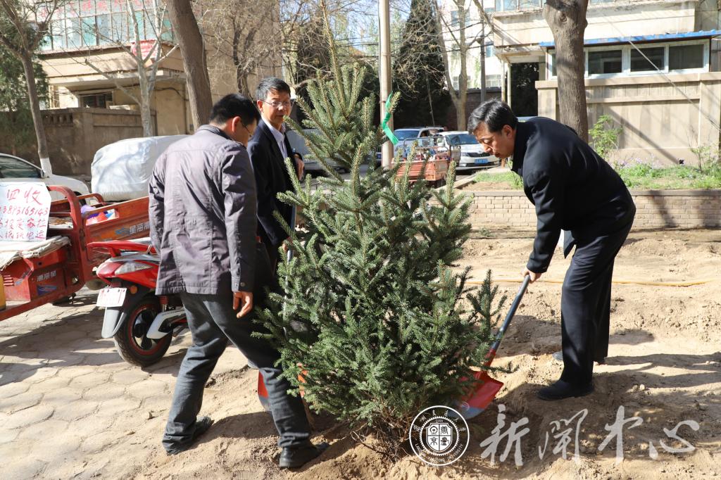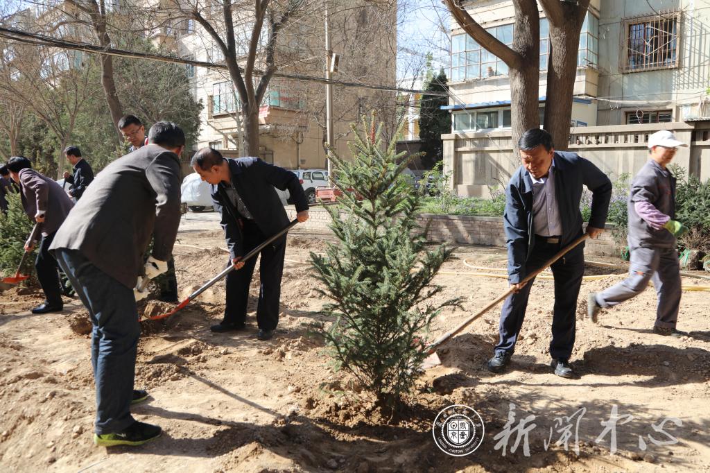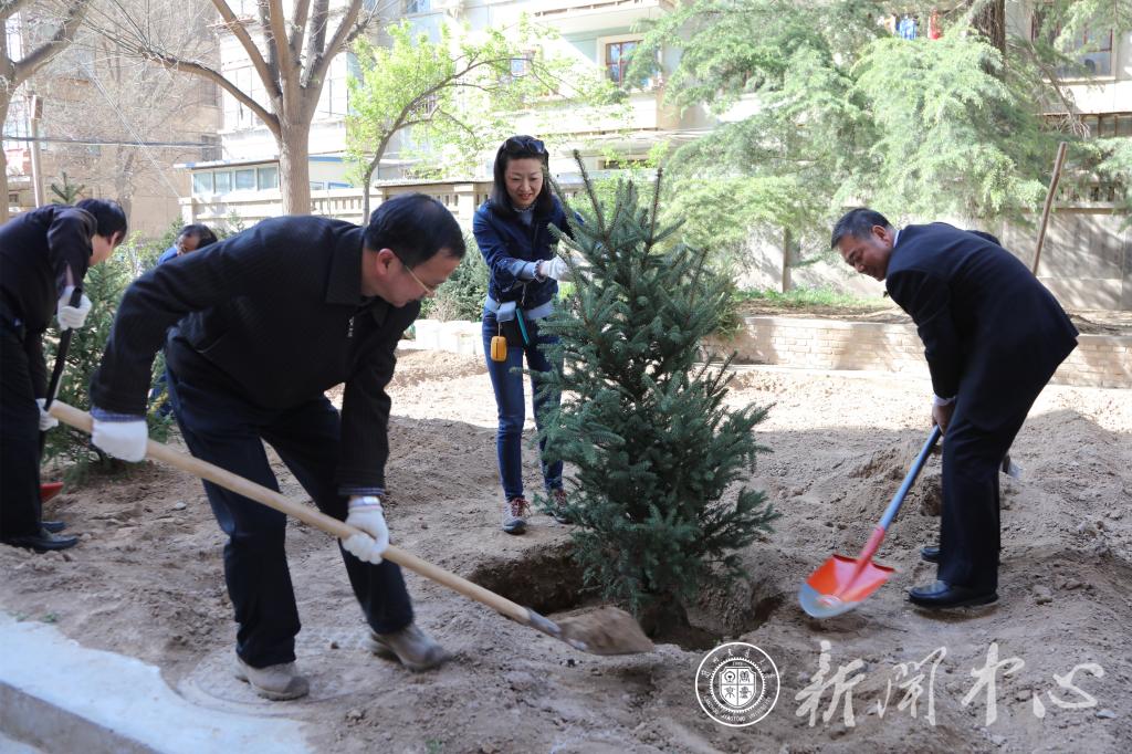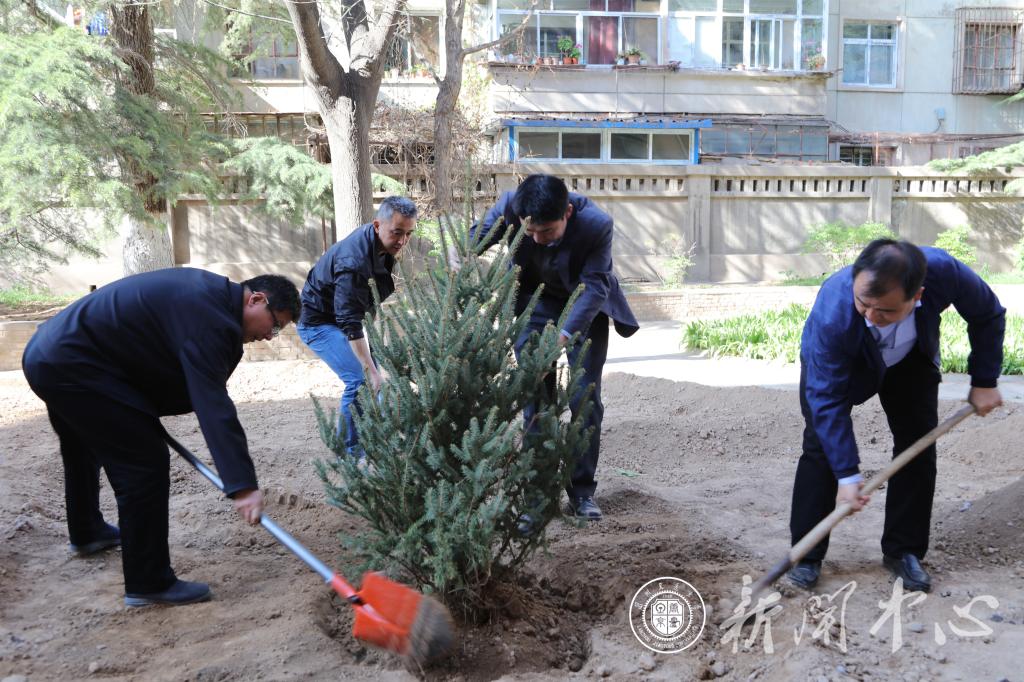 一到植树点,全体校领导立即投入到紧张的劳动中,他们拿起铁锹和学校环卫工人一起挥锹铲土,扶苗种植,填土培坑,亲手栽下棵棵树苗。为提高苗木质量,后勤集团组织相关人员专程到康乐县采购200余棵云杉树苗。一棵棵新栽的树苗迎风挺立,传递着春的生机与活力,为交大再添新绿。在植树过程中,杨子江书记一边劳动一边向后勤部门负责人了解我校今年校园绿化具体实施情况。他指出,要抓住春季绿化的有利时机,积极种植树苗,共同建设新时代美丽、幸福新交大。