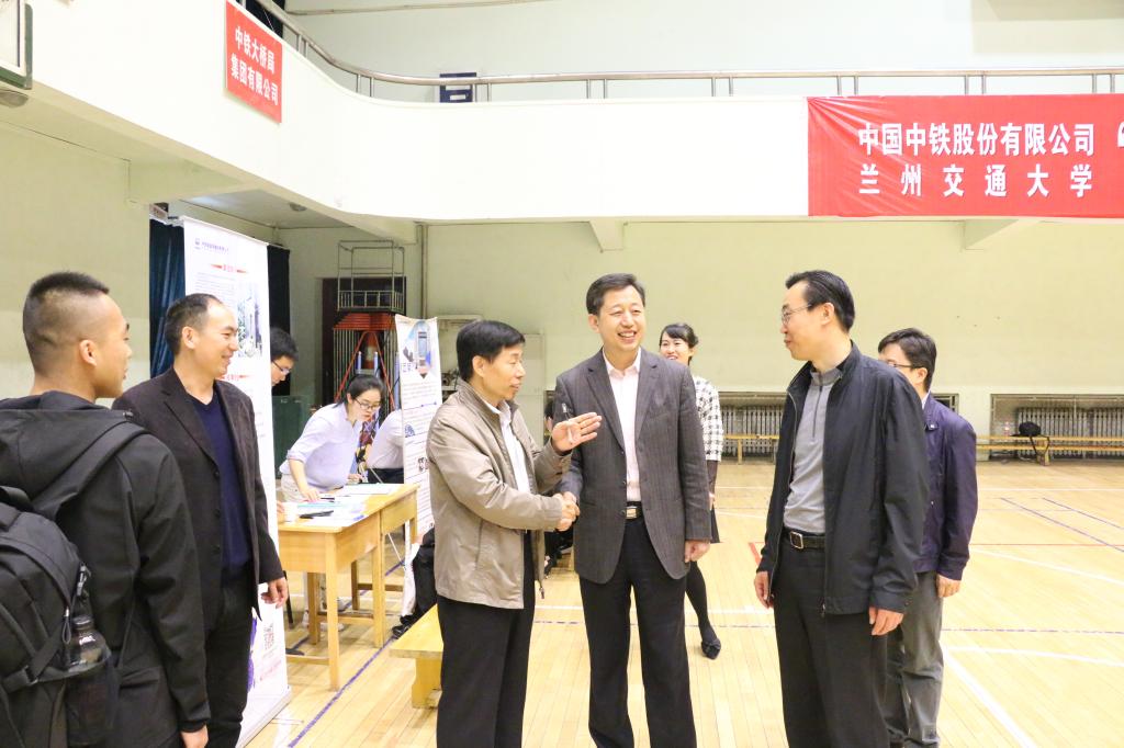 5月8日,中国中铁股份有限公司—兰州交通大学第二届“3+1”国际化工程人才订单式联合培养2019届毕业生招聘会在学校体育馆举行。中国中铁旗下21个工程局集团进行了现场招聘。副校长马军党到招聘现场进行了指导,他指出,招聘会组织一定要提升服务质量,建立健全各种安全预案,为用人单位和毕业生搭建好就业平台,随后,马军党副校长又与招聘企业代表就人才需求变化、招聘专业和毕业生质量进行了沟通与交流。截至目前为止,共有土木工程类、交通运输类、机电工程类、经济管理类、外语类等专业的57名毕业生顺利签订定向就业协议,将进入中国中铁国际班学习。