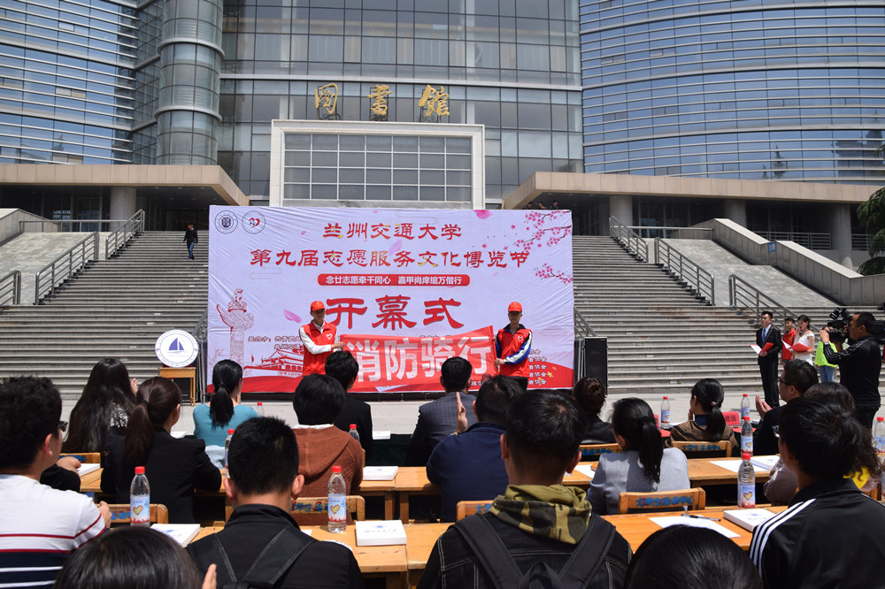 5月11日中午,兰州交通大学第九届志愿服务文化博览节在图书馆前广场开幕,校团委全体成员以及各学院团委书记参加了此次活动。