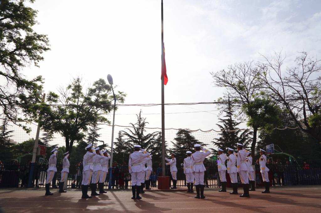 伴随着雄壮嘹亮的国歌声,鲜艳的五星红旗冉冉升起。