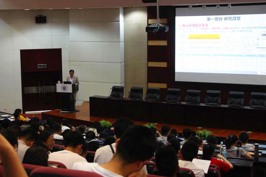 聘任仪式后,丁叁叁教授在我校国际会展中心大报告厅做了题为《中国高速动车组设计中的气动问题》的学术报告。丁叁叁教授从研究背景、研究内容、技术展望等三大方面详细介绍了在我国线路条件下,在高速动车组和高速磁浮列车气动特征研究、设计仿真技术、试验技术、标准规范等空气动力学领域解决的大量关键技术问题。报告信息丰富,生动展示了我国高速轨道装备生产企业在设计更高速、更安全、更舒适、更节能的高速动车组方面持续的努力和丰硕的成果。报告现场座无虚席,秩序井然,气氛活跃,精彩的讲解引来师生们的阵阵掌声。