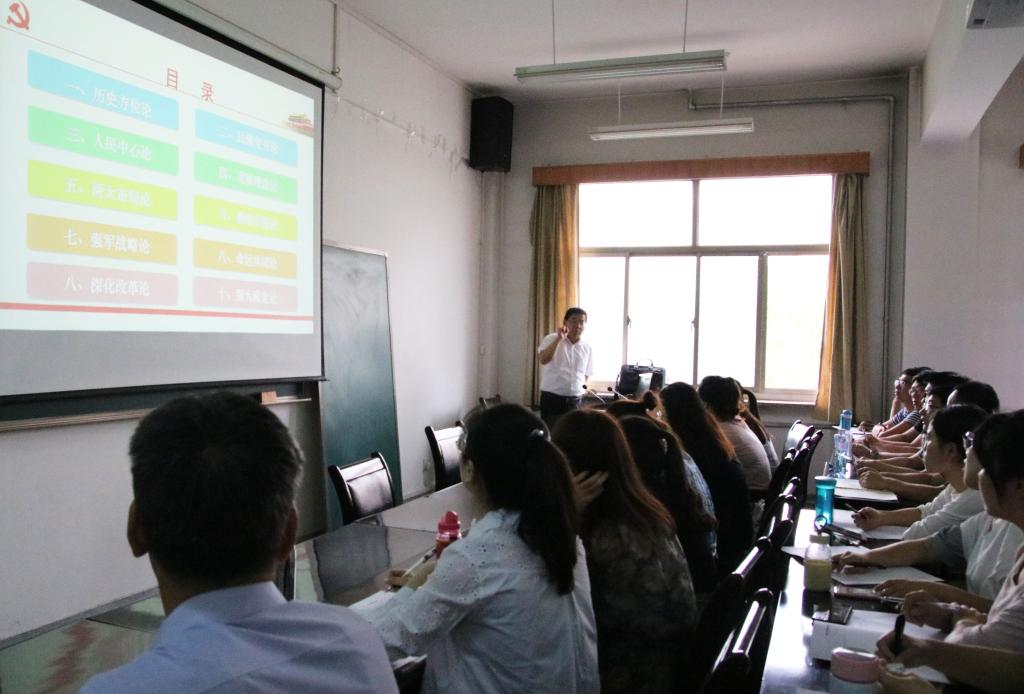 为深入学习贯彻落实习近平新时代中国特色社会主义思想和党的十九大精神,帮助我校思想政治理论课教师更好地把握高校思政课新教材(2018版)的主要内容和基本精神,6月14日下午,应马克思主义学院邀请,兰州大学博士生导师刘先春教授在学院学术厅作了题为《学习新思想 迈向新征程 实现新目标》的学术报告。报告会由马克思主义学院院长蔡中宏教授主持,学院全体教师和研究生聆听了报告。