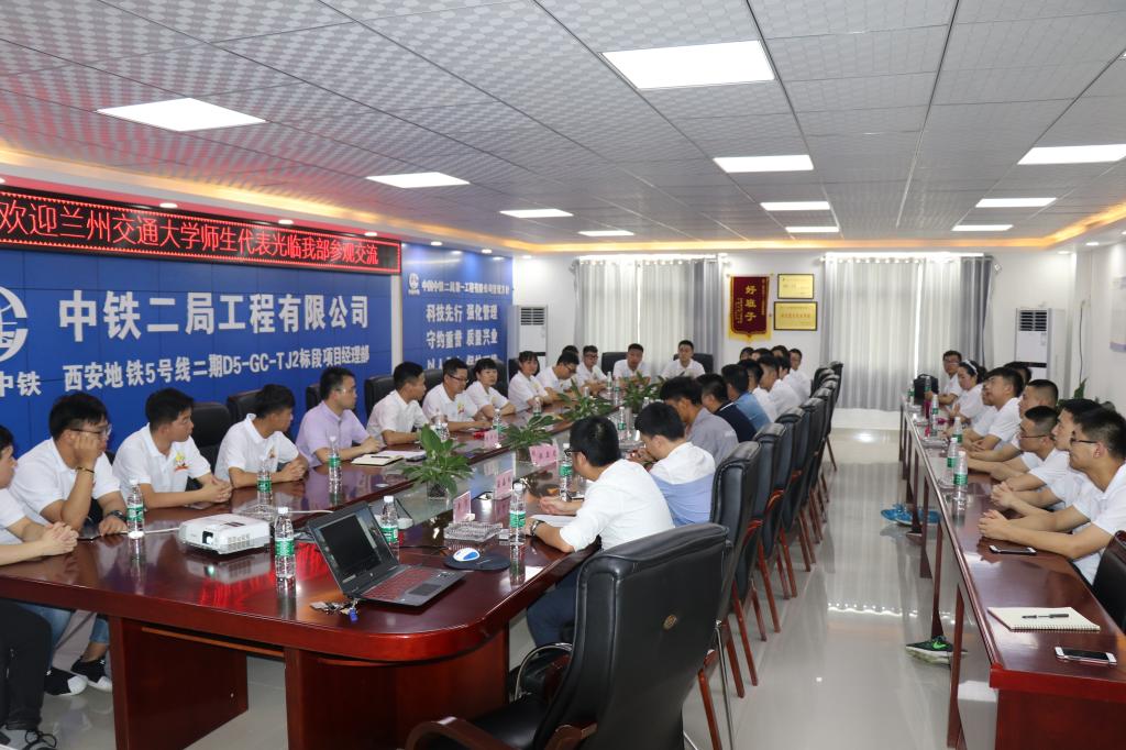 在参观完施工现场后,项目部领导班子与师生们召开了座谈会。中铁二局人力资源部唐梓淇、中铁二局一公司人力资源部部长李骏、西安地铁5号线项目部党支部书记苗永兴、项目部经理成波及相关部门人员出席了会议。