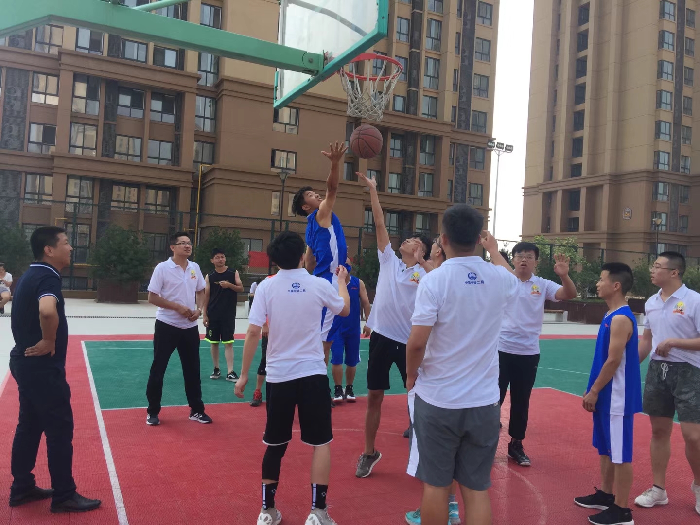 此外,师生代表与项目部员工进行了篮球友谊赛。赛场上双方实力相当,比赛异常激烈,比分一度相持不下,最终土木师生代表队以微弱优势取得胜利。通过比赛交流,双方建立了深厚友谊。同时让学生们明白,不仅要有扎实的专业知识傍身,还要有强健体魄,德智体美,均衡发展。