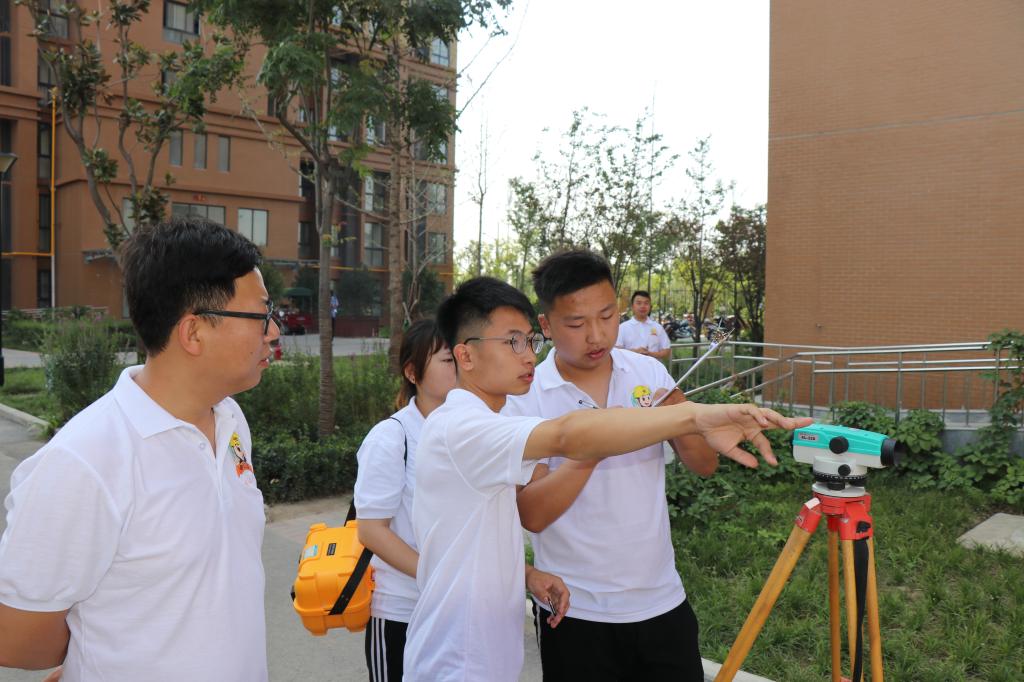 第二天上午,项目部组织了学生代表进行测量实操比赛。比赛过程中各小组团结一致,合理安排,在规定的时间内完成了测量任务。项目部测量负责人进行了专业演示,对同学们测量过程中出现的问题进行了点评,对各小组的测量成绩进行排名,并颁发奖品,同学们在本次比赛实操中受益颇丰。
