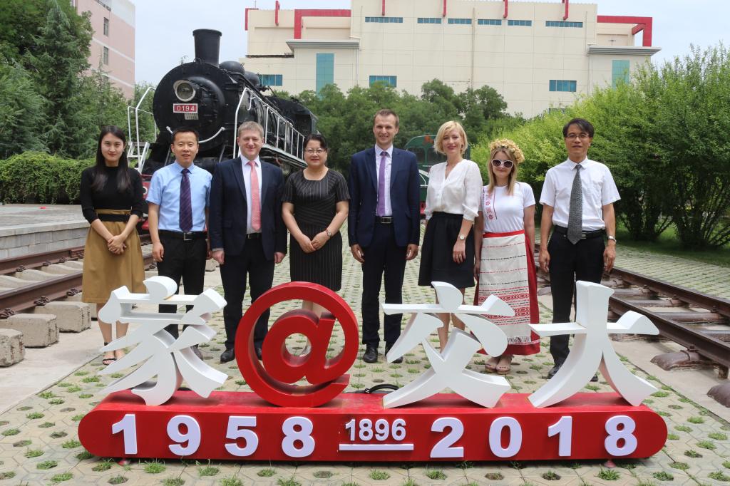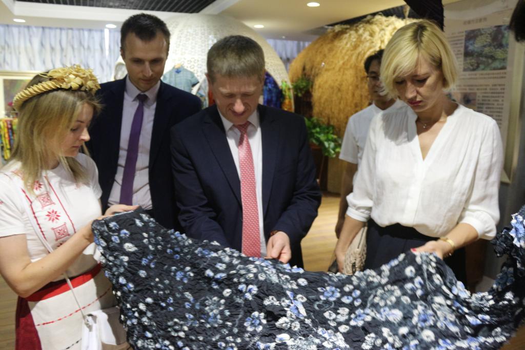 会见结束后,安德烈·斯维里多夫主席、尤里·罗曼诺夫斯基主任在国际教育学院院长张国锦的陪同下参观了我校天佑铁路主题展览馆和染缬艺术博物馆。