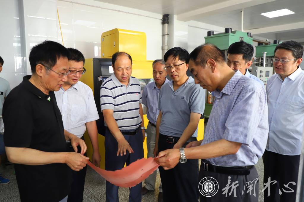 杨子江书记一行首先参观了高选择透过膜的生产及极膜一体化组件的装配过程,并观看了相关视频资料,详细了解了高选择透过膜的生产工艺、特点和极膜一体化组件的性能。