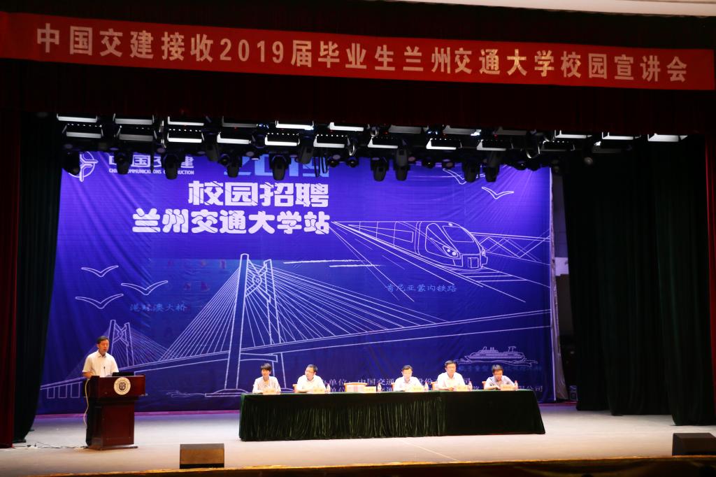 9月4日,中国交通建设股份有限公司接收2019届兰州交通大学校园专场招聘会在我校体育馆举行。中国交建党委宣传部副部长、企业文化部副总经理米金升,中国交建人力资源部总经理助理渠天鑫,中交二公局党委组织部部长、人力资源部总经理杨雄带领的46个子公司92位代表,参加了此次招聘。